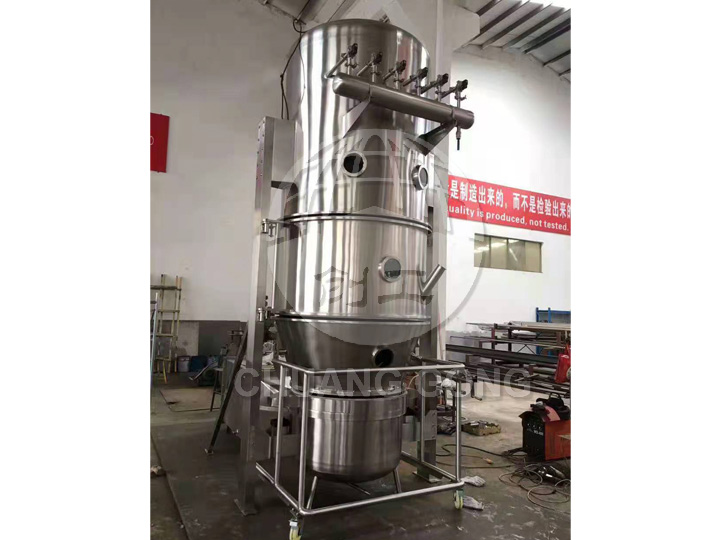 立式沸騰干燥機的原理是物料粉末粒子,在原料容器(流化床)中呈環形流化狀態,受到經過凈化后的加熱空氣預熱和混合,由于熱空氣對物料的不斷干燥,脈沖除塵效率高,通過粉體干燥改善流動性,減少粉塵飛揚;采用抗靜電濾料,設備操作安全,裝卸料輕便快速、沖洗干凈。